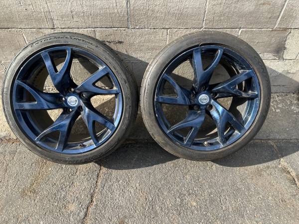 Two 19x10 inch rear wheels Nissan 370z rims 5 on 4.5 lugs fits others - $600 (montebello)