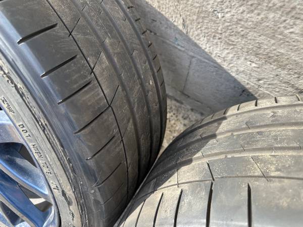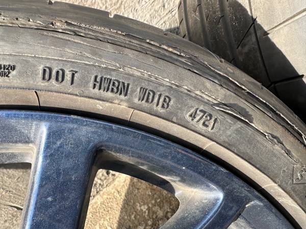 Both wheels come with free used tires on them. They are a matched pair of 235/35zr17 directional radials. They don’t have a lot of tread left, but they would definitely still last a little while.