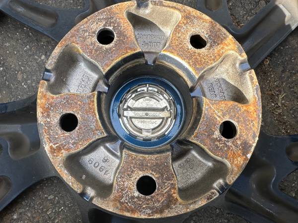 This is two stock factory rims originally from the back of a 2013 through 2017 Nissan 370z. They are 19x10 inch rims and the lug pattern is 5 on 4.5 inches (114.3mm). The rims have a few small scratches, but they are not cracked or badly damaged. These would be perfect if you want to build a staggered set, or you need to replace a damaged rim. This lug pattern will fit on most Nissan and Infiniti 5 lug cars including Sentra, Altima, Maxima, as well as most toyota, Lexus, Honda, Acura, Hyundai, kia, and more.