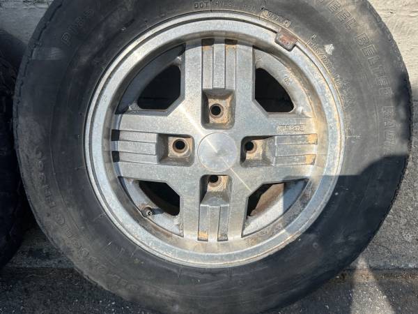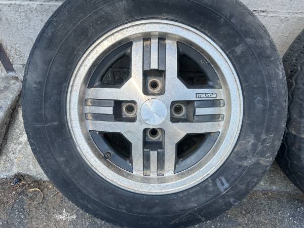 This is two original factory wheels from an 81-85 era Mazda Rx 7 car. They are 13x5.5 inch stock aluminum rims. The lug pattern is 4 on 110 mm. This is a pretty rare lug pattern and doesn’t fit on many cars.