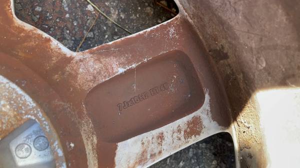 This is an original set of four 16x7- inch aluminum wheels from a Volkswagen Euro van or transporter van from 1999 or newer. The lug pattern is 5 on 112 mm, which will fit; I believe on all Volkswagen Euro vans. The rims are in good condition with no bends or cracks some minor scratches. but nothing major on them Tires are all old and need to be replaced. Three of them are holding air if you need rollers, but I wouldn't drive them until you get new tires. The offset is ET 49.
