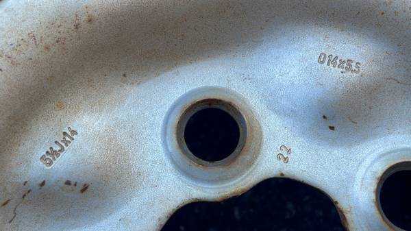 This is a set of four 14x5.5-inch stock steel wheels originally from a Volkswagen Vanagon or Volkswagen bus. The lug pattern on these is 5 on 112 mm. All four rims are in good working condition Little dirty and minor surface rust but no bends, no cracks no