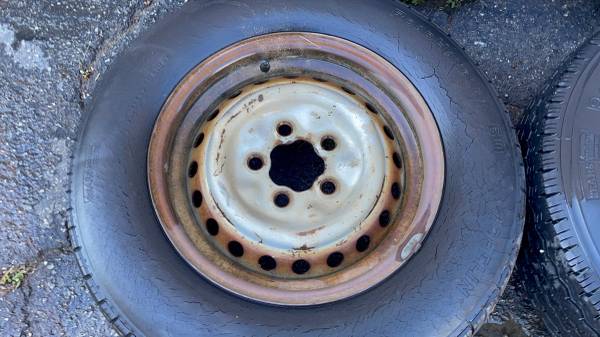 damage on any of them. All four tires are currently holding air They're very old and I wouldn't drive on any of them until you get new tires but if you needed rollers