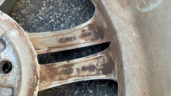 This listing is for one original factory BMW aluminum wheel, measuring 17 by 8 inches with an offset of IS 46, believed to have come from an E83-trim level BMW X3. The wheel is stamped "Made in Austria" and features the standard 5 on 120 millimeter lug pattern, which is correct for most BMW models. The rim is in good working condition, having no bends, cracks, or significant damage anywhere, making it structurally sound. It has only a few minor scuffs and scratches, making it perfect as a full-size spare or a replacement for a damaged rim on an X3. Buyers should verify the offset and clearances for fitment on any other BMW vehicle.