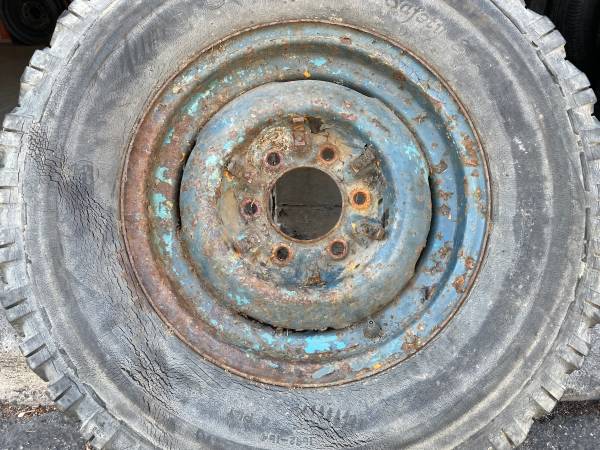 This is one 15x5 inch steel rim from a classic chevrolet car. It is a clip style rim which fits moon style hub caps. I’m not sure what it’s originally off, but it has 6 clips and looks like it should fit over disk brakes. It will fit on any classic 6 lug chevy car or truck from the 30s, 40s, 50s, and 60s.