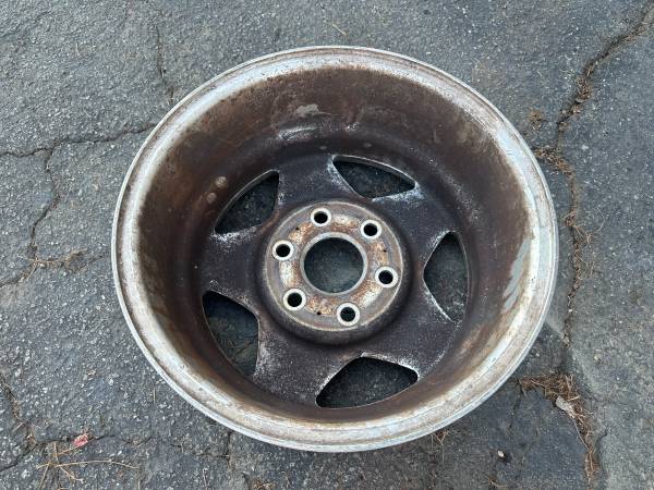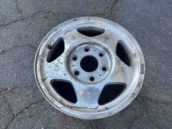 This is a single original 16 inch stock aluminum rim from an old body style chevrolet Z71 4x4. It’s a factory GM wheel made by Alcoa. The lug pattern is 6 on 5.5 inches. This fits any half ton 6 lug chevy or gmc truck or suv from 1988 through 1998. It has a few scratches and the clearcoat is peeling, but overall it’s in good condition. This is a perfect candidate for polish, chrome, powdercoat, or refinishing to stock condition. OBS Tahoe, Suburban, Silverado, or Sierra 4wd 4x4 truck.