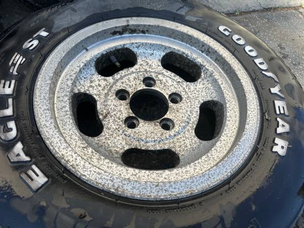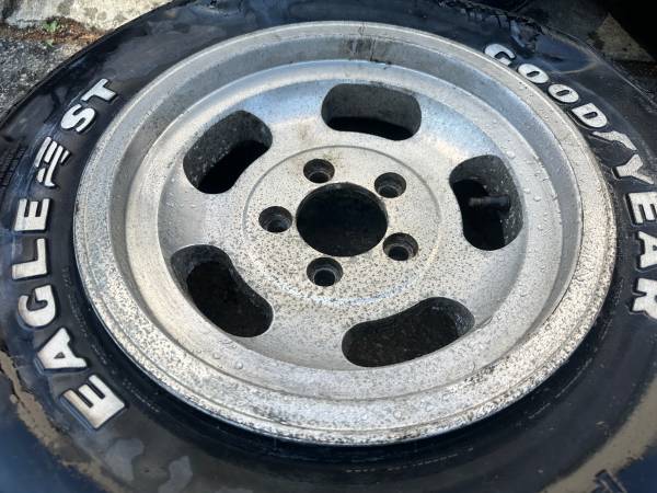 This is four mag slot rims (also called drag slots) that were taken off of a classic Ford mustang. The lug pattern is 5 on 4.5 inches. This includes most classic Ford and Mopar cars, and a few trucks including ranger, or toyota trucks as well as classic Dodge trucks and tradesman vans.