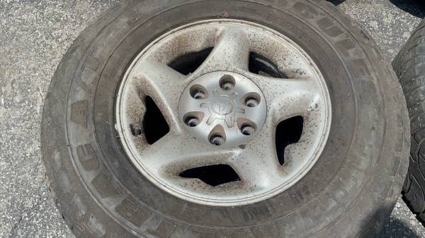 This is a set of four 16x7 inch aluminum rims and center caps from a Toyota pickup truck. The lug pattern is 6 on 5.5 inches and they have a large center bore so should fit on pretty much anything with this lug pattern. All four rims and caps are in good working condition with no bends or cracks. The tires are very old and should be changed they hold air if you need rollers. This lug pattern fits on 4runner, sequoia, t100, tundra, Tacoma many other 6 lug vehicles as well some mini trucks like Nissan hardbody and Mitsubishi mighty max etc