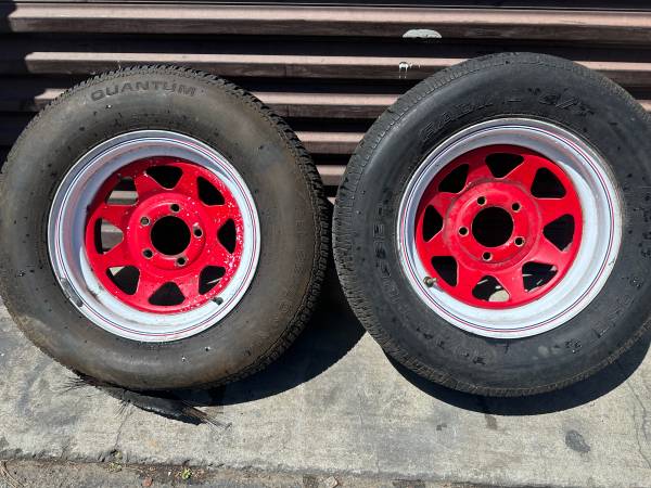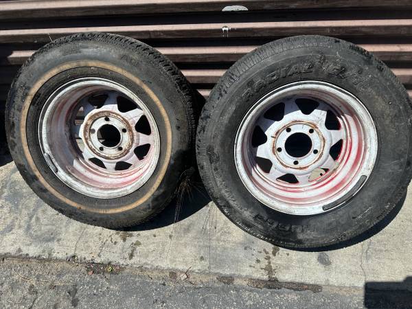 Two 14x6 wagon wheel style rims. 5 on 4.5 lugs mopar, ford, more - $80 (montebello)