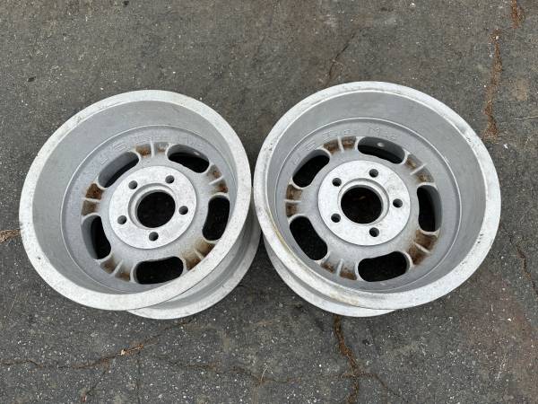This is two US Indy Mag slot rims (also called drag slots) that were taken off of an old chevy car. They are a matching pair. They are 14 inch diameter and 8 inches wide. They have a lug pattern of 5 on 4.75 inches. This fits most classic Chevrolet, Buick, Oldsmobile, and pontiac cars, as well as s10 or Sonoma trucks.