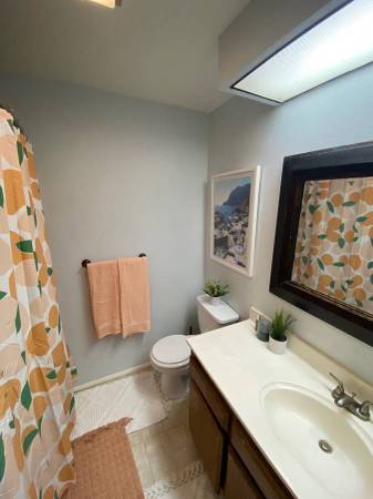 There's 3 bedrooms, 2.5 bathrooms, with a shared bathroom. The room photos seen are of your rooms as well as the other rooms in the house, just to give you a sense of what the rest of the house looks like.
