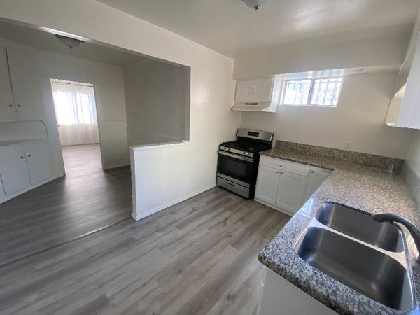 Newly remodeled house - Central Westside Location Small bungalow. Off-street (driveway) parking. Enclosed garage suitable for storage. Large fenced backyard This is a charming freshly remodeled one-bedroom house with new kitchen cabinets and granite countertops, stainless steel sink, stove, wood laminate, and tile flooring, newly painted inside and out, washer/dryer hookups, and a central location close to LAX, the westside and south bay areas of Los Angeles. No smoking unit.