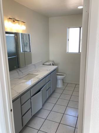Beautifully remodeled 3-bedroom, 2-bath rear house with a spacious garage and driveway parking. Features include granite countertops in the kitchen and bathrooms, a convenient laundry room, and a lovely outdoor patio perfect for relaxing or entertaining. Two car garage.