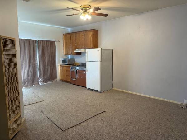Studio Apartment. Private Living room and small kitchen area to cook and wash dishes. Private enterance, private bathroom. Brand new carpeting. Large closet, Celling fan. Electric Stove Top for cooking and microwave. One Person Occupancy Only. Free Utilities and WIFI. Washer and dryer on site. Excellent security. No pets. Month to month. Available to move in now.