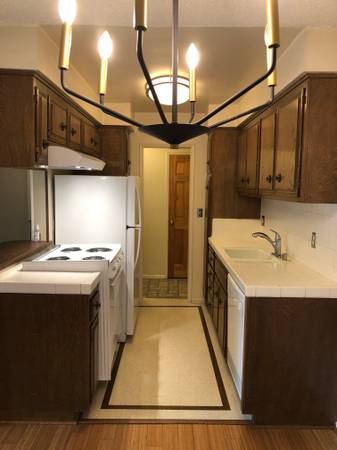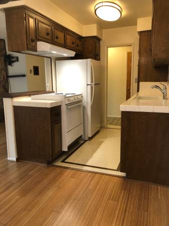 clean and quiet in 9-unit building. Very nice bathroom with pedestal sink, shower over tub, large living-dining area + kitchen with tile counters, stove, refrigerator, dry bar and hardwood cabinets. Bedroom has big walk-in closet + lots of closet and storage. Tenant pays for utilities, except for water and gas. Coin-operated laundry and rear parking space available. Walk to huge shopping area with CVS, Pavilions, banks, post office, restaurants and more. 1 Block from local park with tennis/basketball courts and picnic area. Walk or bike 2/3rds mile to the marina and the huge Chase regional park on the water.