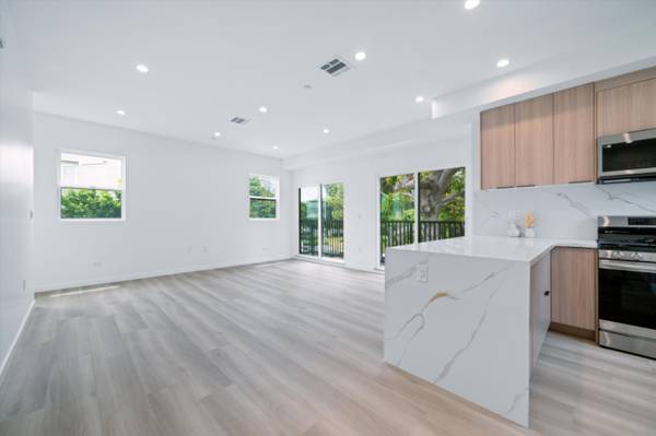 Move-in incentive of 4 WEEKS FREE! Listing Price of $5,995 takes into account the 4 WEEKS FREE on a 12 month lease move in credit. Lease price is $6,540. Experience contemporary living at its finest in this newly built collection of three-story townhomes, thoughtfully designed to capture abundant natural light and effortless flow. Located in vibrant West LA, each 2025-built residence offers an ideal blend of form, function, and sustainability. Expansive windows throughout the home invite sunlight into every space, enhancing the clean lines and open layout. The kitchen showcases modern European-style flat-panel cabinetry, complemented by designer quartz countertops that continue as a full-height backsplash delivering both elegance and durability. Each unit is outfitted with a washer and dryer, as well as solar panels, supporting both comfort and energy efficiency. Bedrooms are thoughtfully placed across all levels, offering flexibility for a variety of lifestyles