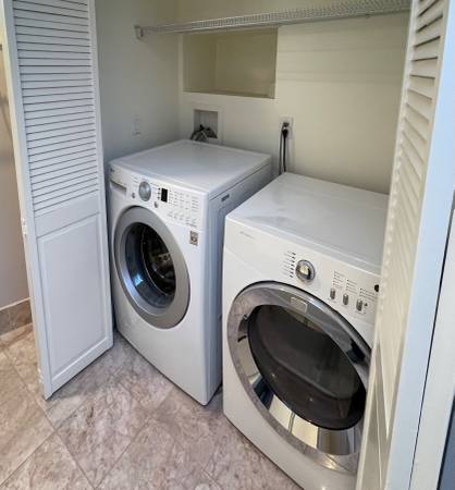 MAIN UPPER LEVEL: 2 bedrooms , 2 complete bathrooms with French doors leading out onto oversized decks. Kitchen has stainless steel appliances, ample maple cabinet storage and granite counter tops including an adjoining den/entertainment room with vaulted ceiling and sky lights. Master bath has double sinks, marble floor, jacuzzi bathtub/shower, linen closet and built-in washer/dryer cabinet.