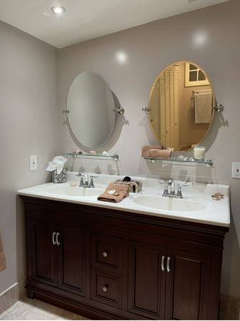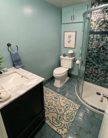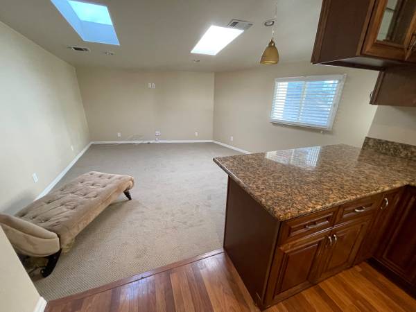 LOWER LEVEL: Separate entrances: front French doors and door to backyard deck). Main room has multiple windows and provide great light. Convenient for: work/ studio, gym, TV viewing, bedroom or combination of all. Includes a full kitchen with farm sink, dishwasher, stove, refrigerator, M/W with white quartzite countertops. Bathroom has a beautiful glass tiled walk-in shower with curved glass doors. As well a separate room with a closet for ample storage space. Property has additional off street parking. Small dog OK.