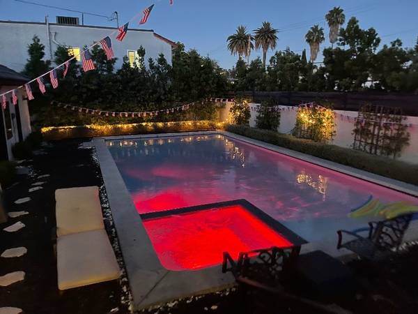 Experience Hollywood luxury in this modern mansion with a Shared bedroom and shared bathroom, perfect for short-term travel professionals. Located in the vibrant Larchmont neighborhood, you'll have easy access to Hollywood, Thai Town, Downtown, Koreatown, Mid-City, Mid-Wilshire, West Hollywood, and Beverly Hills. Enjoy the amenities of this stunning home, including a giant 20x40ft pool with a jacuzzi, outdoor patio lounges with a fire pit, a living room den with a pool table, a full kitchen with stainless steel appliances, and laundry services on the 2nd floor. Shared room/Shared bathroom: $895/month. All rentals require a deposit equal to one month's rent. Contact us to set up a home tour.