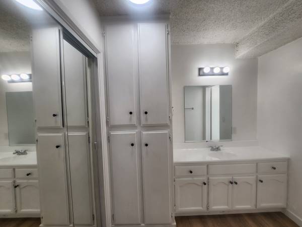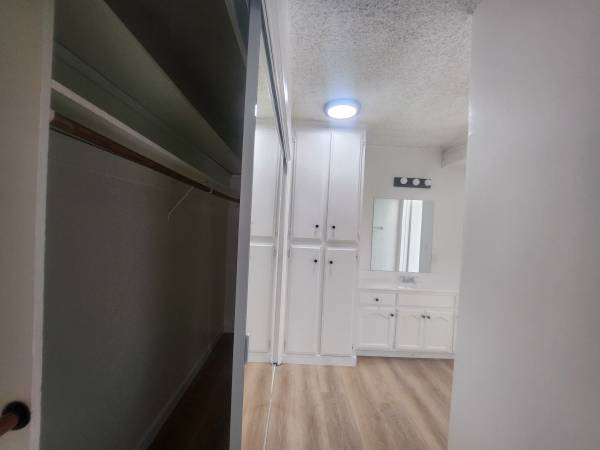 Spacious double closets with a separate dressing area and vanity