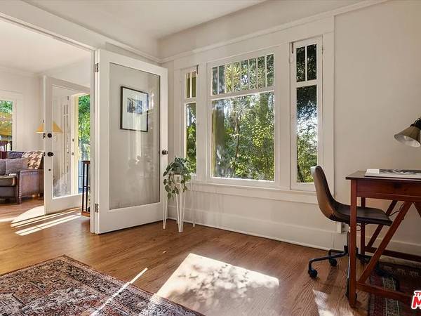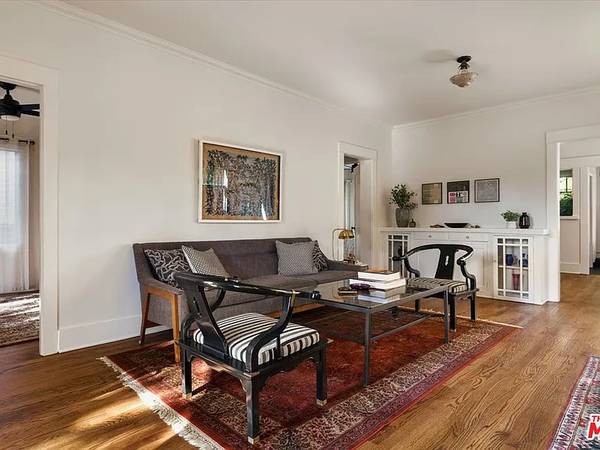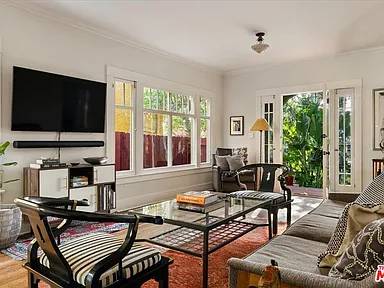 Silver Lake bungalow, built 1923, now available: 2 beds, 1 bath, ~1,040 sqft. Walk past garden plantings and step up onto the porch before entering a living room with built-ins, crown moulding, large windows, and glass doors. The kitchen includes vintage charm and good storage, with a pass-through into the dining area. Two bright bedrooms and a full bathroom finish the interior. Outside is a terraced garden with patio, a detached shed studio, and an upper entertaining deck that captures views over palm trees and the city. Privacy assured via mature landscaping and three redwoods. Detached garage included. Minutes to Sunset, Echo Park, and freeway access (2 / 101). Make an Appointment!! Text/Email:- AlexRivera3369Gmailcom