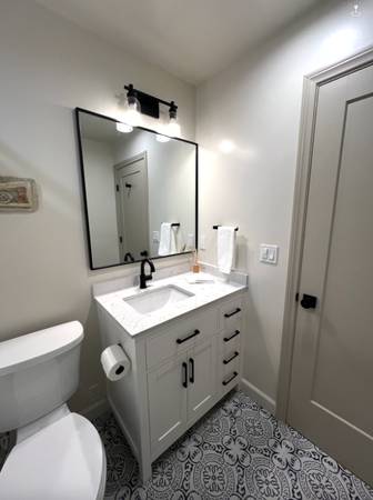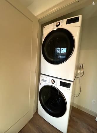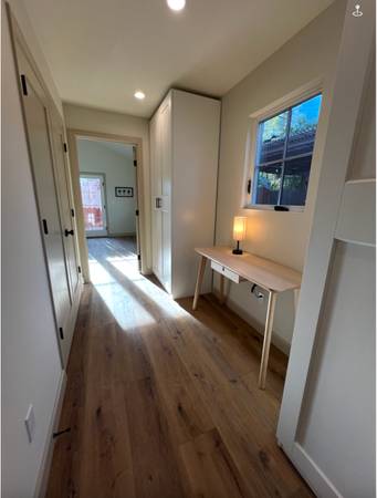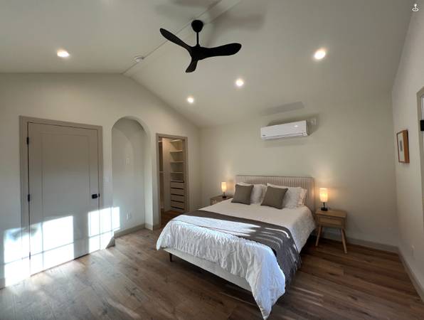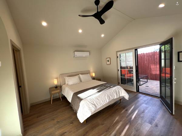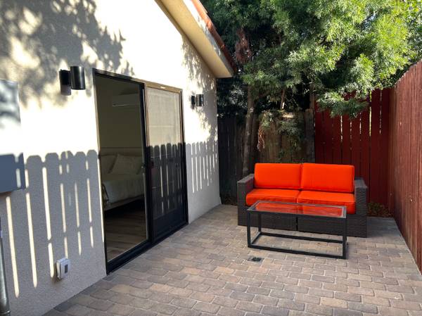 Discover your private Spanish oasis in this newly constructed ADU. This charming casa combines old-world charm with modern convenience, featuring elegant arches and traditional Spanish architectural details that transport you to the Mediterranean. Your private entrance leads into a thoughtfully designed living space flooded with natural light. The contemporary kitchen sparkles with brand-new stainless steel appliances, perfect for trying out those tapas recipes. A full-size washer and dryer add everyday convenience. The spacious bedroom offers abundant built-in storage solutions, while high ceilings and large windows create an airy, open feel. French doors lead to your personal garden patio an ideal spot for morning coffee or evening sangria. Located in a peaceful residential pocket, this ADU offers the best of both worlds: tranquil surroundings and easy access to local hotspots. Walk to trendy restaurants and boutique shopping, then return to your serene retreat.