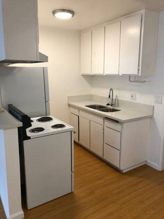 Upper one bedroom unit with all utilities included. Unit has laminated wood plank flooring in living room, vinyl flooring in kitchen and bath, carpet in bedroom. Unit has one covered parking space, laundry room on premises, building and parking is also gated. Small, quiet 10-unit building with onsite manager. Culver City adjacent, close to shopping, restaurants, coffee shops, Venice Beach, bike trails and more.