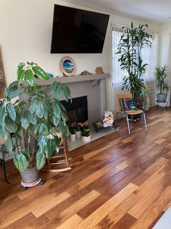FULLY FURNISHED Corner Condo Oasis! Relocating or Renovating? Silent Pets OK! Very flexible dates. This 1st level unit with SE and West exposures is drenched with natural light from the open sunny skies and views of the fireworks, the moon and the stars! Lots of cross breezes if you don't want to run the A/C. Wraparound lush, terrace almost 150 sq.ft. Wood floors, 2 full bathrooms, spa jets bathtub and separate walk-in/frameless shower and double vanity sinks. Washer/dryer in the pantry off the galley style kitchen. Open dining/living area leads to large sliding patio doors. Smart TV's in both bedrooms and living area. Wood burning fireplace (gas starter), central heat/air conditioning, huge storage closet with full range of beach/sports equipment in the hall area next to the unit. Unlimited use of a tandem kayak at nearby Mother's Beach only about a mile away. Close to all the boats, walking/bike paths and the marina jetty. Resort style living - 2 tennis (pickleball too) courts, dry sauna, multipurpose/rec room (ping pong table/kitchen/library), on site new gym, hot tub, and year round heated pool.