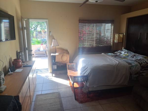 I have a 425 sq.ft. studio casita for rent for $1600 a month or $55 a day over a 30 day minimum. The guest house is on my 1/2 acre gated pool estate with private parking for 2 cars approximately 2 miles north of downtown Palm Springs on N.Sunrise Way. Feel free to call me anytime. Sorry no pets. Same price it's been for years. No Price Gouging...Patrick