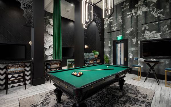 Double-Height Clubhouse featuring Custom Pool Table, Three HDTV's & a Spacious Kitchen with Complimentary Coffee