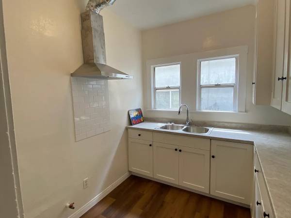 Beautifully remodeled downstairs unit close to shopping, schools, stores and laundromat. New kitchen with stove. Remodeled bathroom. New flooring. One parking spot.