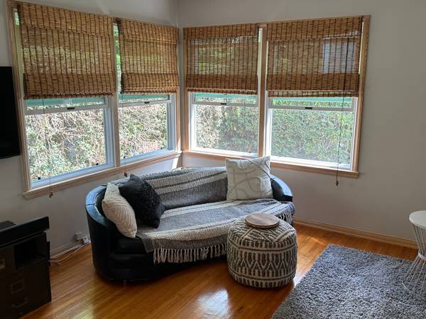 Nestled off the street in a delightful garden setting in a quiet and safe neighborhood in Santa Monica, with only 6 units total on property, all occupied by kind and considerate professionals. The Bungalow is approx. 700 sq. ft., with blonde hardwood floors, one bedroom with king size bed. There is one bathroom, a living room, quaint dining area and an amply sized kitchen. There is one portable AC unit to use when needed. We have a laundry room behind the bungalow and the washer and dryer are free for tenants to use. It's like having your own little home with no one above you or below you. It is fully furnished and we provide linens, towels, a full kitchen with pots and pans, coffeemaker, toaster and microwave. All organic household, no toxic chemicals used for cleaning.
