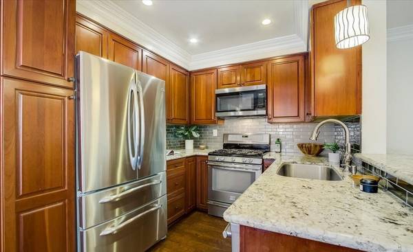 This lovely one bedroom, one bathroom unit features cherry stained cabinets in kitchen and bathroom, granite countertops, stainless steel appliances, crown moldings, laminate flooring, spa-like bathroom, Large master closet, In-unit laundry, one parking stall in a gated garage and extra storage.