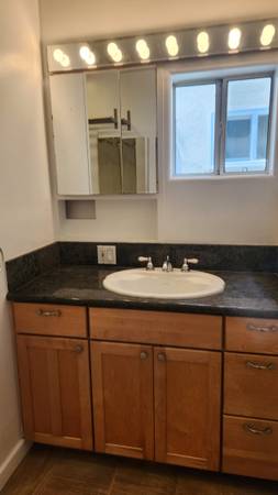 Wood laminate flooring in living room & bedrooms. Tile floors in kitchen, bathroom and office. Double pane windows, Recessed LED lighting, ceiling fans, Maple cabinets in bathroom and kitchen. Granite counter tops. Large bathtub with tile walls. Unfurnished, TV mounts in living room and bedroom. Pre wired for surround sound and cable.