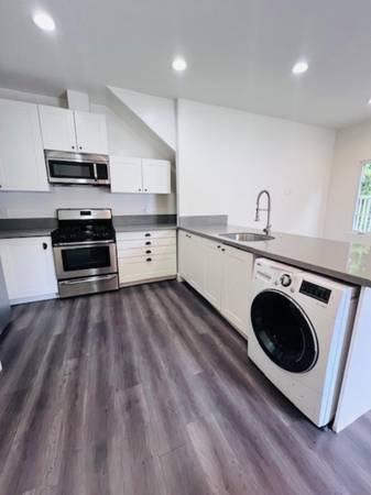 This beautifully renovated 9-unit building is the nicest on the block! This beautiful One-Bedroom, One-Bathroom apartment is located upstairs and is a corner unit. It has lots of windows for natural light and is very airy. Apartment homes come with refrigerators, stoves, built-in microwaves, stoves, and in-house washers and dryers.