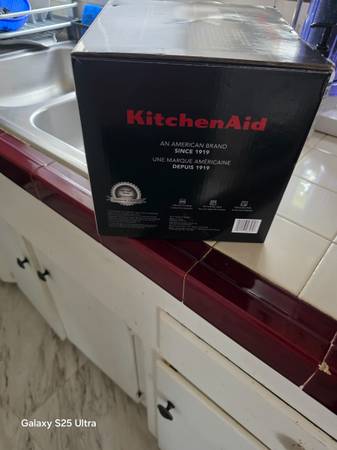 New in original.box. Kitchenaid stainless steel Teakettle Brushed Aluminium with Lid whistle. Thick Aliminium layer for rapid boils. Induction ready.