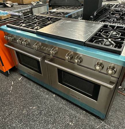 Wolf freestanding range Stainless steel / 60” wide / Infrared double griddle / double oven All gas / hardly used like new condition Working great no issues 6 powerful top burners / convection oven...