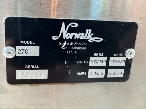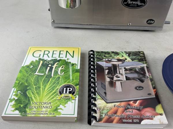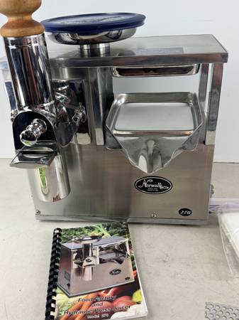 NORWALK 270 Cold Pressed Juicer! Stainless Steel. In excellent condition and includes Norwalk Recipe Book and about 10 Bags. Also includes Norwalk Original Shipping Box with all the padding. Was very lightly used.