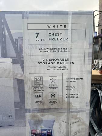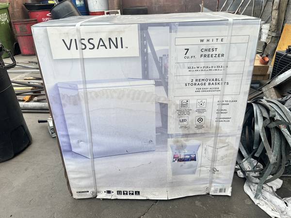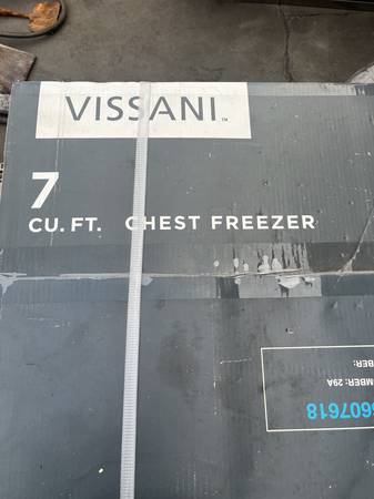 FOR SALE: Brand new Vissani 7.0 cu. ft. Manual Defrost Chest Freezer – never opened, still in box. Price: $190 (OBO) LED light inside Garage-ready design Perfect for food storage, hunting, or meal...