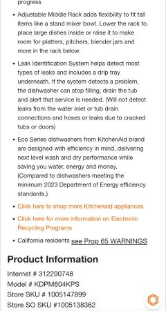 Kitchen Aid Dishwasher Model# KDPM604KPS $700 Aqua Eden Bathtub: 60inch alcove acrylic tub left hand drain Model# HVTDR603022L $450 Jonathan Y Bathroom Sink: 20inch wide x 18.5 inch deep. Black...