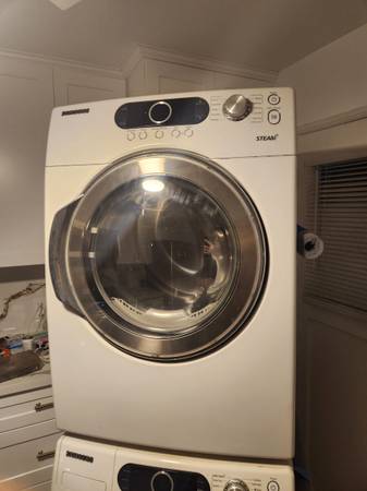 Samsung washer and dryer. Front load. Stackable. Gas dryer. Stack kit included. Washer throwing code for hot water valve. $125 or best offer Must pick up. No delivery.