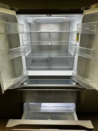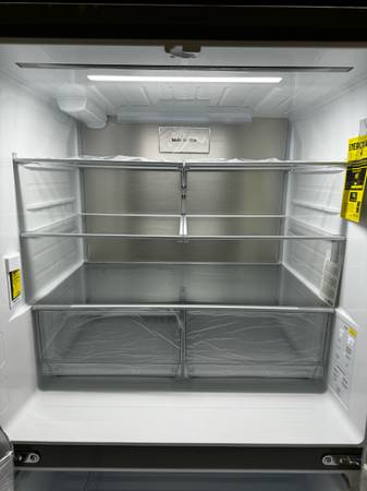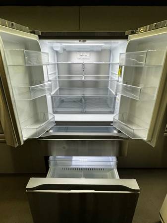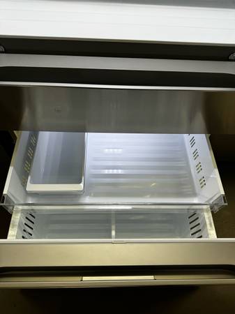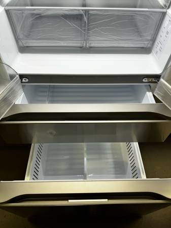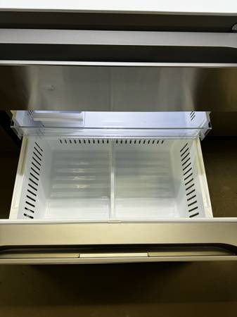 LG stainless steel French door refrigerator Four door refrigerator Top side by side refrigerator doors Drawer #1 is a refrigerator pull out drawer Drawer #2 is a freezer pull out drawer Interior...