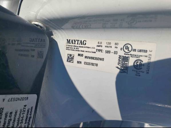 This MAYTAG washer and dryer just like new is available for sale, working perfectly, selling cause I got a bigger one, I can deliver