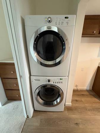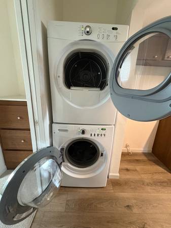 Frigidaire washer and gas dryer Can be stackable or side by side 27in wide 30in depth 72in height stacked gas dryer Energy star I can deliver and install In great condition