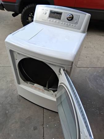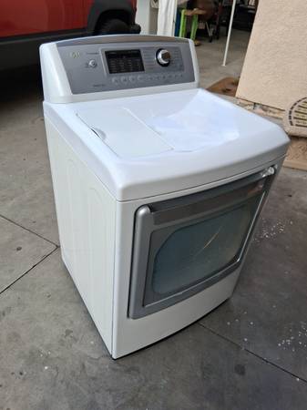 Works perfect no issues of any kind. It's in good condition. It's a heavy duty, extra large capacity, high efficiency, energy saving, timed dry, sensor dry, drum light, end of cycle signal. 3 months warranty and I can test it here before you take it. Price is firm with the warranty. Serious buyers only. I also repair gas dryers and washers.