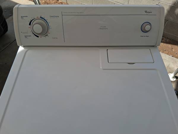 Works perfect no issues of any kind. It's in good condition. It's a heavy duty, commercial quality, extra large capacity, automatic dry, timed dry, end of cycle signal. 2 months warranty and I can test it here before you take it. Price is firm with the warranty. Serious buyers only. I also repair gas dryers and washers.
