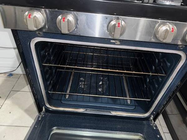 Width 30 inches 5 burner Heavy-duty grates Gas Convection oven Self clean Used Same day delivery and install available Call or text message message /7:/1438 8994 :0// 3 month warranty