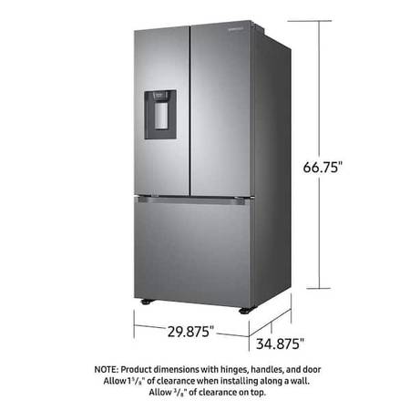 22 cu ft • Stainless Steel Selling my Samsung French Door Refrigerator (model RF22A4221SR). stainless steel, external water dispenser, bottom freezer. Works perfectly — only selling because we...