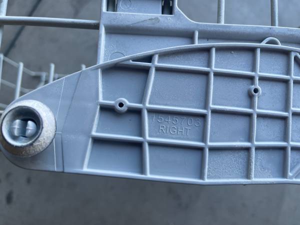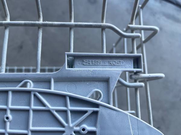 A01986801 Frigidaire/Electrolux Dishwasher Upper Dishrack w/Wheels and spray arm assembly. Used. 1544679 /1545703 right / 1545702 left /1544816 left / 1544819 right /