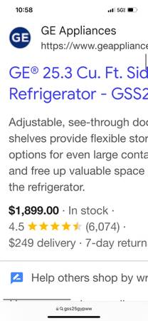 GE 2 door Side by side LED lighting 36” wide New open box Manufacture warranty